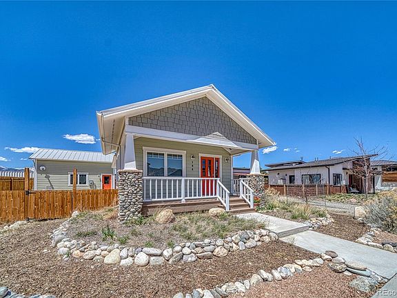Welcome Home to Colorado's finest contemporary home in Crestone Mesa! Enter into a large living room with an open floor concept into the dining and kitchen areas. The custom kitchen with Quartz countertops, Stainless Kenmore appliances, including a 5 burner gas stove with stainless hood. Vinyl plank flooring throughout the main floor east to clean and durable, perfect for Colorado living. The main floor primary bedroom has a large walk-in closet and a full bathroom. The stairs have a beautiful custom built in for additional storage and the Insulated interior master bedroom walls to minimize noise from stairs. The two other bedrooms offer great space, custom ceiling lights and large closets! The laundry room off the back has an extra deep stainless laundry room sink and lots of cabinetry. Slab and crawl space hybrid construction. Crawl space built taller for ease of access. There are several large boulders in place for landscaping in a fenced yard with gate access at the front and rear. There is CAT6 cabling throughout the house, including the garage, suitable for POE equipment. Just outside is a mechanic dream gas-heated garage with 10' x 12' door opening, 16' x 22' interior floor and 12' ceilings. Shelving installed on walls above workspace rated for >200lbs per pair of angled brackets. 220v 50 AMP outlet installed for charging car and/or welding. Dimmable industrial LED lights for a well lit workspace with 2 built in areas with additional lighting for workbenches. Wall mounted TV included in garage. Also includes a ceiling mounted exhaust fan. 10' wide HOA compliant trailer parking area next to the garage.