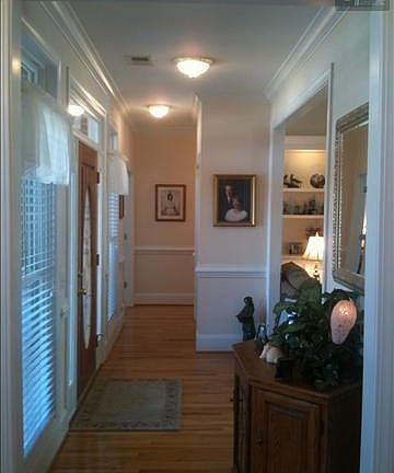 3/4 ACRE FLAT LOT community w/16 homes - perfect yard for a pool. Yard extends beyond fence, irrigation, screened porch w/brick fountain that could easily be converted to a sunroom by adding windows. Separate deck leading from porch as well as master suite. Custom built w/HIGH CEILINGS including CROWN MOLDING through entire home. HUGE master suite w/trey ceiling including crown molding inside trey as well as around master walls, Jacuzzi tub w/ two beautiful corner windows, separate vanities & shower. BEAUTIFUL windows throughout home add a lot of light. Hardwoods in Entrance, LR, FD, Kit & breakfast area. Gas FP with granite and built in's. Oversized 2 car garage w/workshop area & tons of storage area. FROG, Landscape Lighting.