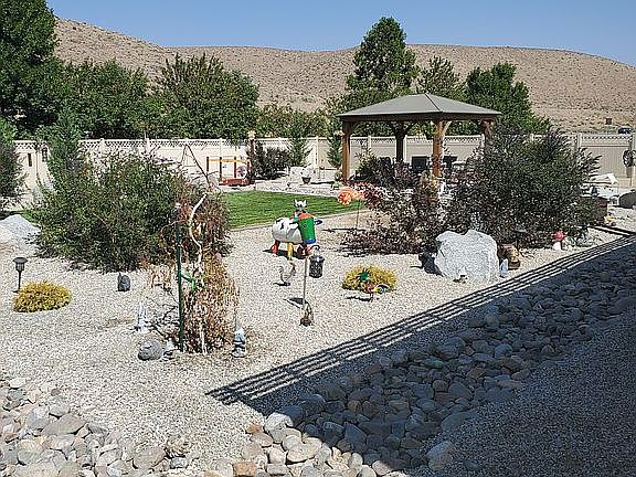 HURRY! This one will not last! Beautiful home in the highly coveted Santa Maria Ranch in Dayton, NV. 2,753 sqft, 5BR, 4BA single level with a 3 car garage. Built in 2017. Gourmet kitchen. Granite countertops throughout. Two master bedrooms with ensuite bathrooms. Backyard paradise including a gazeebo and a pergola! 14’x57’ covered patio, fully landscaped. 12’ RV gate with a 12’x56’ RV pad behind the gate! 11 miles from Carson City. Washer & dryer included!