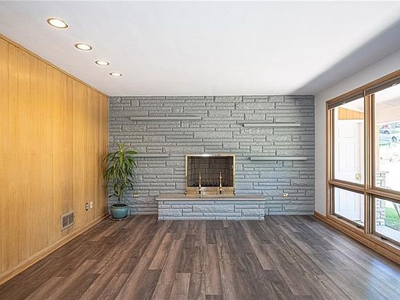 Welcome Home to 106 Derwent Drive conveniently located off Mcknight Road in North Hills School District. HUGE 2300+ sq ft of finished space. Thoughtfully renovated mid century modern brick home sitting on a park like lot. Open floor plan featuring vinyl flooring , LED lighting, and triple pane windows. Enjoy the natural light from the floor to ceiling windows with original wood work in the spacious living room. Modern kitchen with a side by side Kenmore Elite refrigerator and freezer, water fall quartz counter tops, stainless electric stove and range hood. Plenty of space at the kitchen counter for a quick coffee and spacious dining room with walk out to patio. Vibrant hallway bathroom with turquois tile, Toto toilet, and Kohler fiberglass tub. Enormous finished lower level with an additional 1000+ square feet. Game room with wood burning fireplace, projector screen and bracket for projector ready for movie night! Attached 2 car garage right off the kitchen. Pre wired for EV charger.