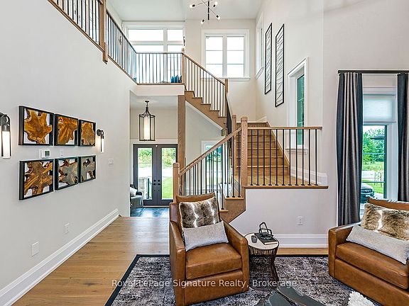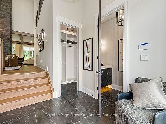 Embrace the pinnacle of luxury living in the coveted Camperdown community! This custom-designed chalet by award-winning designer Jane Lockhart is your perfect 4 season getaway. Just a 3-minute drive from the renowned Georgian Peaks Ski Hill and Georgian Bay golf club, this home blends timeless elegance with exceptional comfort. Featuring 6 bedrooms and 5 bathrooms, it offers the perfect retreat for both relaxation and entertainment. The striking exterior showcases impeccable craftsmanship and sophisticated architectural design. The loggia, an ideal space for outdoor entertaining, includes an outdoor fireplace and Phantom screens, seamlessly connecting indoor and outdoor living perfect for enjoying the fresh mountain air and breathtaking views. Inside, you'll discover a custom kitchen and apres-ski wet bar, complete with bespoke cabinetry, beautiful hardwood floors, and soaring ceilings throughout. The open-concept layout invites gatherings with family and friends, with each room thoughtfully designed to be a focal point of comfort and style. The spacious floor plan includes six generously sized bedrooms, providing plenty of space for family and guests. The finished basement offers additional versatile space, perfect for entertainment, relaxation, or recreation whether you envision a home theatre, games room, or fitness area. Enjoy life in the beautiful Southern Georgian Bay, just minutes from Thornbury, Blue Mountain Village, and downtown Collingwood. Reach out for more information and to schedule your private showing!