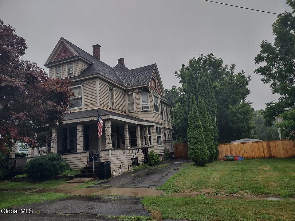 Bring your tools.. This house would be ideal for a contractor to restore for their own investment or use. Two large apartments (one Two bedroom and one Three bedroom) One is occupied by a long term tenant yet both are in need of repairs. Base board heat down and separate electric with water and sewer included. Deep yard with parking along side and architectural shingle roof. Over the years has produced good net income as the taxes are quite low.