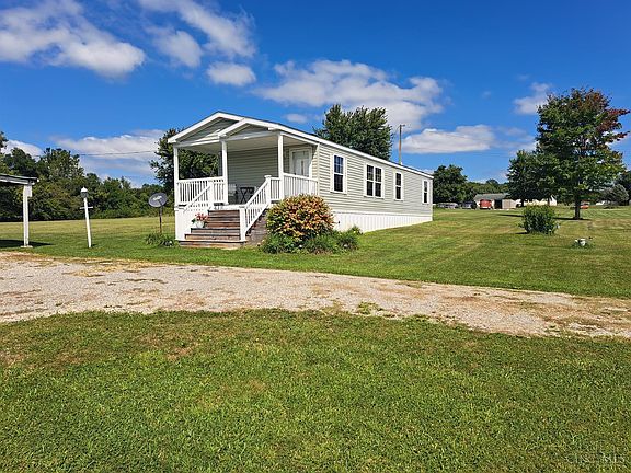 Beautiful move in ready 2015 Venture singlewide manufactured home, just like new. title has been surrendered to real estate, 2 bedroom, 1 bath, 832 Sf, open living & kitchen area, washer, dryer stove & refrigerator stay, large covered front porch, new rear deck. sets on 2 acres, just a few minutes to Paint Creek State Park & camping area, large workshop building w/lean to & carport, large storage shed. this is a must see!!!