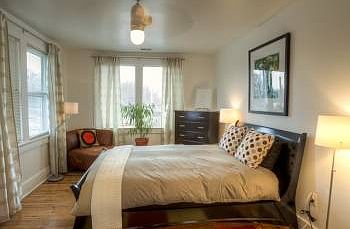City of Decatur. 1600 sq.ft. second story loft apartment in a small working/living complex for creative professionals. Quiet neighborhood. The loft has two bedrooms, two full baths, galley-style kitchen, updated appliances, and an airy open loft floor plan with multiple skylights & 16 ft ceilings. Additionally the space features two overnight sleeping lofts,central heating and air, washer and dryer, and a large private deck. High speed internet and TV service included. Walk to downtown Decatur. The East Lake Marta station is only a 5-minute walk away.