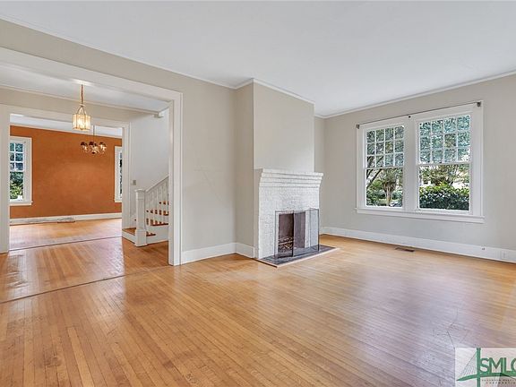 Ardsley Park diamond in the rough with income producing carriage house and off street parking, on 3 city lots. Large bedrooms, kitchen, formal living and dining room, sunroom with tons of natural light. Hardwood floors throughout, two staircases, breakfast room with downstairs powder room. Newer roof, HVAC, and stucco finish on exterior. Brick paver walkway, lush lawn and koi pond for casual strolls and children playing hide and seek. Many possibilities exist to bring this amazing property back to its former grandeur!