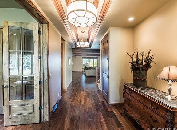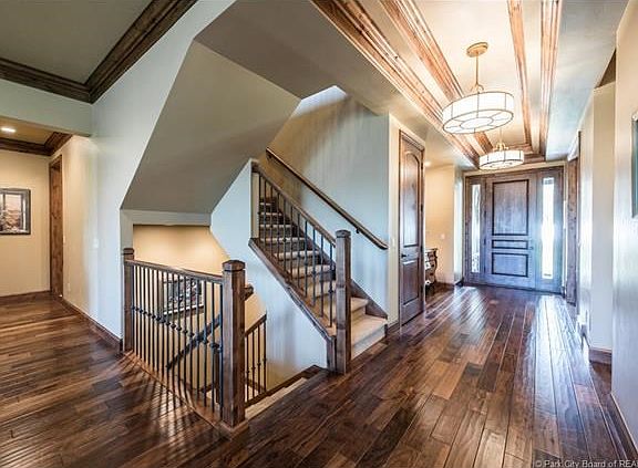 Stunning, luxuriously upgraded and nearly 6500 SF spacious home in Valais, overlooks pond with views toward the mountains. Designed for both efficient single level living and multi-generational gatherings with 6BR/7BA, 2 kitchens, 2 family rooms. Great room with majestic stone hearth fireplace, 2 laundry areas and 826 SF 3-car attached garage. Notice the crown molding, coffered ceilings, splendid custom kitchen and office cabinetry, lovely granite counters, thoughtful floor plan, expanded and partially covered deck areas and patio. Take in the finished walk-out lower level with 2nd kitchen and fireplace. All enhanced by extensive amenities of Valais community including multiple pools, clubhouses, indoor sports court, exercise facility, park and playground areas, all landscaping and road maintenance. Smell the flowers. Listen to the birds. Enjoy elegant, graceful living.