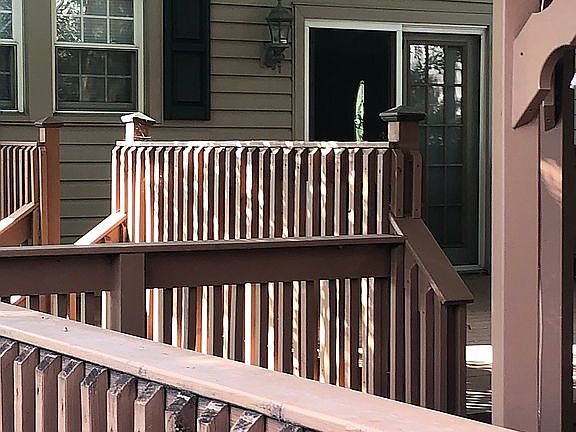 Two story cape code, three bedrooms, two baths, finished basement, two decks, hot tub, gazebo situate on three tree lined city lots