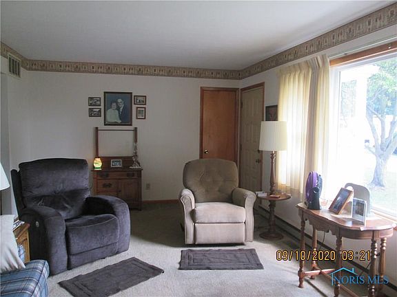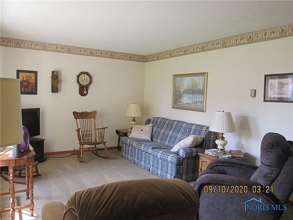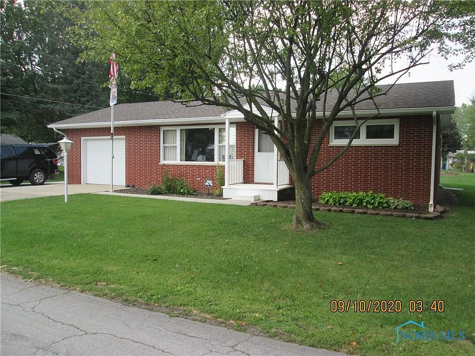 Brick ranch offering two spacious bedrooms, large living room, kitchen/dining area plus 1 car attached garage. This home sets on four lots in a small community. Improvements: replacement windows/doors, roof, detached outbuilding/garage with concrete flooring 18x20, leaf filter gutter protection. Dining room offers sliding patio doors leading to a covered patio over looking backyard.