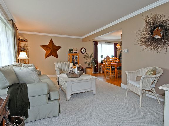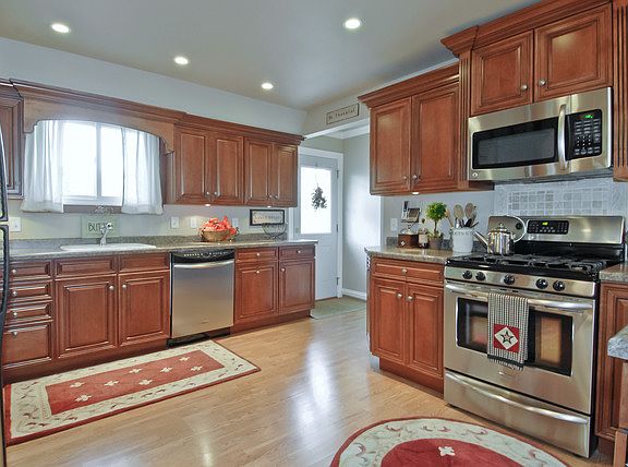 This fabulous home offers many wonderful upgrades thru out~ Wood laminate flooring, crown molding, wide base trim/6 panel oak doors & lighting~Tastefully decorated w/rich neutral colors~Stunning kitchen w/custom glazed maple cabinets w/stacked molding, SS appliances & recessed lighting~New exterior siding & Anderson windows~New deck, pergola & fence w/arbor~Large sun room offers addt' living space~Great backyard too!