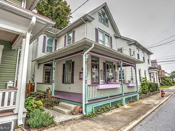 This property is the perfect property for Lititz. As soon as you pull up to the property you will see the wrap around porch with 2 front entryways. You enter into the sitting room which opens to the living room and dining room. 3 more lovely sized rooms on the main level and 2 large bedrooms upstairs. Main bathroom on the 2nd floor with tile floor and claw foot tub with shower and walk-in closet. Laundry and 1/2 bath on the main level. Large wrap around deck with a great shade tree coming right out of the deck. Fenced in yard with a potting shed and a 1 car garage with a unique entrance. Garage also offers a 2nd floor and it's own touch of style with a spray painted door. Don't delay before it is too late to call this unique property home.