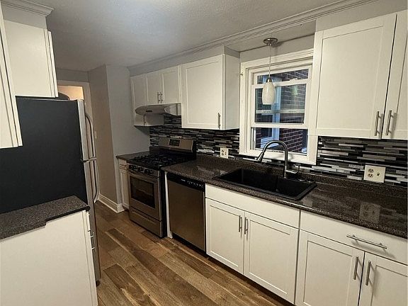 Beautiful completely renovated top to bottom lower apartment with stainless steel appliances, laminate floors and wood burning fireplace (NRTC). Spacious 2 bedrooms & Bonus room could be office/den. Apartment includes private backyard, off street parking and 1 garage space. All brick exterior, washer and dryer provided in the basement; storage area available as well. Tenant is responsible to pay and electric. First month's rent and security deposit due at lease signing. Non-smokers, credit and background check with all applicants. Applications through RentSpree.