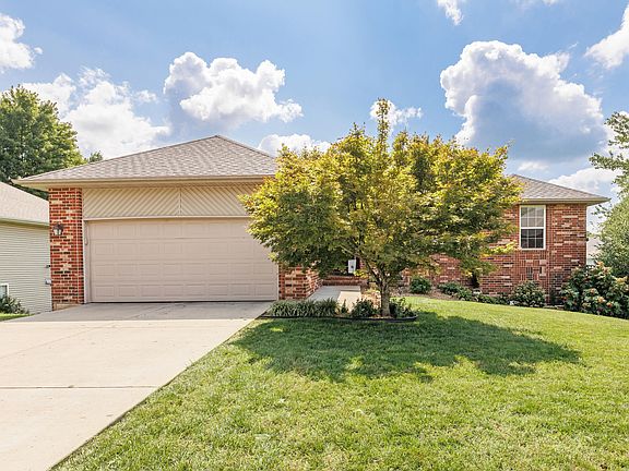 Incredible Custom Built Walkout Basement Home in Nixa! This one-owner beauty is situated in a quiet cul de sac and was built to entertain, featuring 2,880 sq. ft. of quality living space, 5 bedrooms, 3 full baths, a fantastic kitchen, two family rooms, covered deck, fabulous backyard and a 2-car garage. New Roof in Spring 2021 by Cox Roofing w/transferrable warranty! New AC Unit Spring 2023! Upon entry you're welcomed by a neutral color palette, clean lines and an abundance of natural lighting. The custom kitchen features pretty cabinetry adorned by granite countertops, corner sink & stainless appliances. Just off the kitchen is the laundry/mud room, which connects to the 2-car garage. The master suite is on the main along with 2 bedrooms and hall bath. Downstairs, the walkout basement features 9' ceilings, the second family room, wet bar with mini fridge, 2 additional bedrooms and access to the covered patio. As a bonus, this home offers a John Deere Room; the perfect place to store all of your lawn tools. The spacious backyard will be your favorite place to watch the kids play and entertain family & friends this summer season. The home is framed with freshly updated, beautiful landscaping & mature trees! Call us today for your private tour of this Nixa beauty.