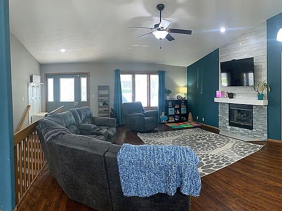 Sturdy all brick home located in family oriented neighborhood 3 blocks from Cimarron schools. 2 large bedrooms on main level,1 being a master suite with walk-in closet and large master bath. Open concept living room to kitchen with vaulted ceiling. Gas fireplace serves as focal point of the living room. Multiple skylights allow plenty of natural light in kitchen and master bath. Centrally located laundry next to kitchen and 2nd main floor bathroom. Basement has 2 additional bedrooms, great sized family room and 3rd bathroom. Ample storage under stairs and in mechanical room. Interior completely repainted in 2018, all new flooring in upstairs in 2015. Roof was replaced in 2013. Great sized backyard with privacy fence ready to entertain with composite deck and manicured lawn, large established trees and sprinkler system. Utility shed located in backyard as well. All appliances stay except deep freeze in garage.