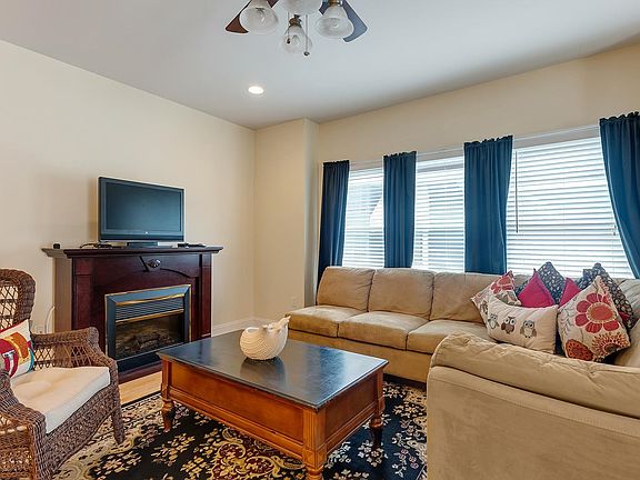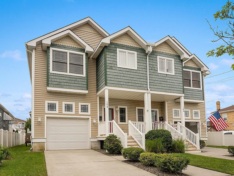 Enjoy the Bay, the Beach and great restaurants all just steps away from this large 4 bedroom 2.5 bath townhouse with private garage. Sunset Lake is one block west, the beach is 4 blocks to the east, and local favorites like The Doo Wop Drive-Inn, The Jellyfish Cafe, Primos, Tony's Produce, ice cream shops and bike rentals are steps away. You'll love the smell of cinnamon from your front porch as the smells from nearby Barry's Buns greet you for your morning coffee, if you are a night owl, the large back deck is perfect for a nightcap while you watch the Friday fireworks. The first floor has a tile foyer, leading to an expansive open concept living room/dining room/eat-in kitchen. The living room/dining area has hardwood floors, a wrap around couch, electric fireplace, TV, and dining space for 6. This kitchen features storage galore; custom white cabinetry, extra high wall cabinets with glass displays, tons of drawer storage, pantry shelving next to the refrigerator and a great center island with more storage and granite countertops. The kitchen has seating for 6: 4 at the table and 2 spaces at the island. For outdoor dining, just step out of the glass slider from the kitchen to the back deck. Upstairs you'll find 4 over-sized bedrooms, the laundry room and 2 bathrooms. The master suite features a king sized bed, dresser, sitting area with TV, and a walk-in closet. The master bathroom has a separate shower and jacuzzi tub, both with custom tile. Down the hall is a large laundry room with full-sized washer and dryer and a wall of shelving. Across the hall is a roomy queen bedroom with double closets. Continuing to the end of the hall are two more bedrooms; a double bed, a couch with a pull out single and double closets, and finally the bunkbed room with 2 full-sized beds. Additional features include: sprinkler system, outdoor shower, electric garage opener and Andersen windows throughout. House comes fully furnished minus a small list of personal items. Square footage is taken from a survey the sellers have. Buyers are encouraged to verify square footage on their own prior to purchase.