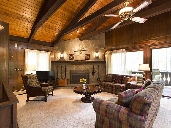 Tanglwood Lakes! Come enjoy the amenities! This spacious, well kept home offers 4 bedrooms, 2 full baths, wide open floor plan with modern kitchen, 2 stone fireplaces, Florida Room, screened porch, 2 levels of decking and more. Attached garage, full basement and paved circular driveway! Spend the day at the beach area on Lake Wallenpaupack, stop by the community clubhouse (and soon-to-be fitness center!), or play on one of the few sports courts/fields! Community golf course also!!