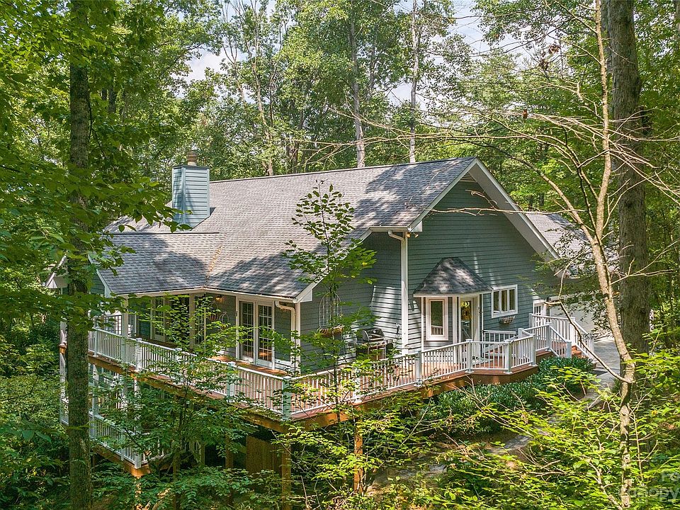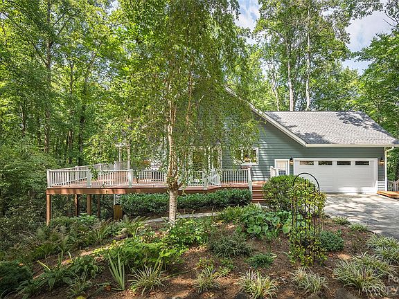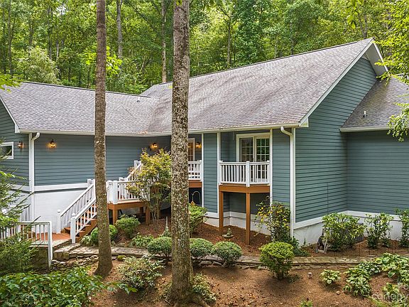 Nestled on 5 acres in desirable Eastmoor, this home is a gardeners dream with beautifully maintained grounds and nature all around plus enjoy The Eastmoor HOA common area green spaces that border the Swannanoa River. This home features a wraparound deck providing covered area to enjoy seasonal views and entertaining. The main level offers a great room with a fireplace, high ceilings and custom-built-ins. Updated kitchen with breakfast area, spacious walk-in pantry and plenty of cabinet space. Large dining area with deck access. Primary bedroom has a fireplace, cozy window seat, en-suite bath and a large walk-in closet. The main level also includes an office with a private deck, a laundry room, and a half bath. Nicely finished walk out basement has a family room with a gas stove and a full wet bar, two additional bedrooms with walk-in closets, two full baths plus bonus room with closets. Plenty of storage throughout plus a Generator. Minutes to Downtown Asheville. See Agent remarks