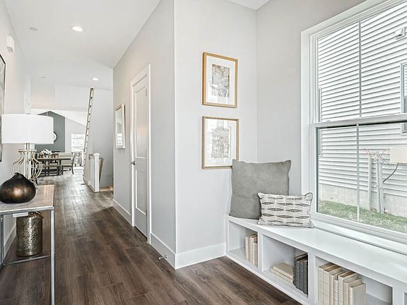This 2-story townhome with first-floor owner's suite includes a 2-car garage and a covered patio for outdoor living. Stylish vinyl plank flooring flows from the foyer and kitchen to the living and dining area with cathedral ceiling. To the rear of the home is the spacious owner's suite with an expansive closet and a private bathroom with double bowl vanity and 5' shower. The kitchen is well-appointed with stainless steel appliances, quartz countertops with tile backsplash, and a large center island. The sunny family room is warmed by an electric linear fireplace and provides access to the covered patio. On the 2nd floor are 2 additional bedrooms, a full bathroom, and a loft space. Questions? Contact the community sales manager.