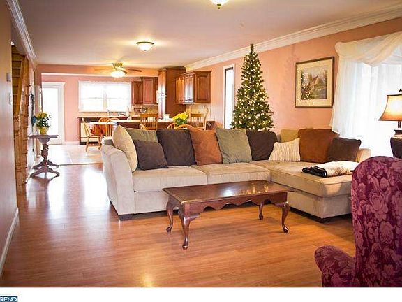 Tons of space in this renovated two story colonial! Transformed single-story house is now a 3 bedroom 2 bath spacious home. Walk up past professionally landscaped front lawn to a covered porch entrance and into an open living/dining/kitchen space. New Pergo floors throughout. Beautiful maple kitchen cabinets include pull out shelves in pantry. Cooking is fun and easy with tons of tiled counter space and breakfast bar. Great open flow for entertaining in this multi-use space. On the other side of the attractive oak staircase, the first floor also includes playroom/family room, a full bath, and a large laundry room/office with built-in laundry chute from 2nd floor master bath! Beautiful french doors off the kitchen open to a large composite (TREX) deck with stairs leading to a big level backyard with paved private parking space. Upstairs has three large bedrooms with closet space. Master suite includes walk-in closet, bathroom with shower plus jacuzzi tub and access to the center hall. Pull-down stairs lead to attic storage space with 7 ft ceilings and room for all of your things. Full unfinished basement with sump pump also has plumbing for possible .5 bath and access to the backyard. Outside, another storage door leads to space under the deck. No detail was forgotten in this renovation, with ceiling fans in every bedroom and the kitchen, central air, double paned windows and 200 Amp service, panel and updated wiring. Great location just minutes to parks, shopping, restaurants and the Wilmington/Newark regional rail line (formerly the R2). Special touches like leaded glass windows show the craftsmanship and detail that went into renovating this home. Quick possession possible!