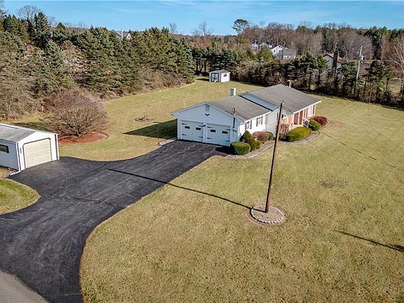 Welcome to this charming two-bedroom, two-bathroom lovingly cared for Ranch home situated on a beautiful 1+ acre lot. Perfect one floor living with everything you need on the main floor. Large eat in kitchen with good amount of countertop and cabinet space, built in breakfast bar and all appliances included. Great family room with bright bay window that offers phenomenal views and an abundance of natural sunshine. Two nice sized bedrooms, 2 full bathrooms, one which has a walk in shower, the other complete with a bathtub and shower. Separate main level laundry area and multiple storage closets throughout the home. Lower level partially finished basement with wood burning stove, additional living space that has potential for more bedrooms, office, playroom or whatever you choose! Large workshop area, storage area and brand new oil burner located in the unfinished portion. 2 car oversized attached garage with additional one car detached garage. Macadam driveway and beautiful corner lot with easy access to all major travel routes. Come check it out at a Public Open House Sunday December 1st from 1-3 pm or call for your private showing today!