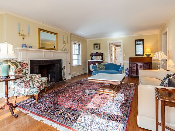 Classic brick center hall colonial featuring hardwoods, loads of character & ample living space has great flow & function for everyday living. Front foyer welcomes w/views of 1st floor. Dining room's custom built-ins flank French doors overlooking private, park like grounds & allowing light to flood space. Living room has fireplace w/detailed wood mantel & accesses first floor master bedroom addition w/its large bath, walk in-closet & home office. Kitchen features cherry wood cabinetry, brand new granite tops & tiled backsplash plus stainless appliances opening to large eating area & great room addition w/fireplace, skylights & loads of windows. Second floor highlights gracious landing w/turned railing, five generously sized bedrooms- three being ensuite. All 2nd floor baths have been nicely renovated (12) w/Kohler fixtures, marble tile & glass frameless shower doors. Large level lot w/mature plantings & abutting woods add to homes appeal & privacy.