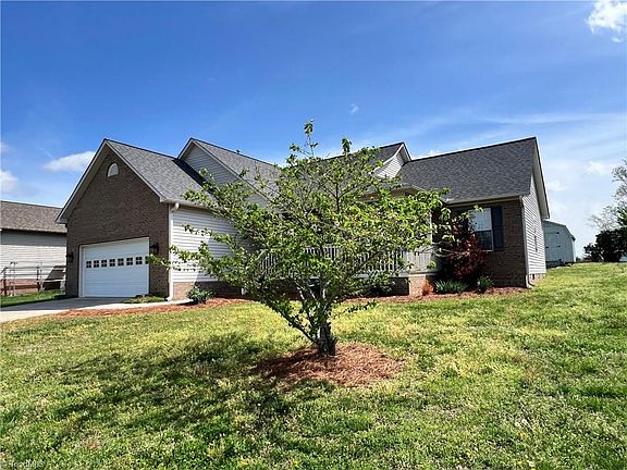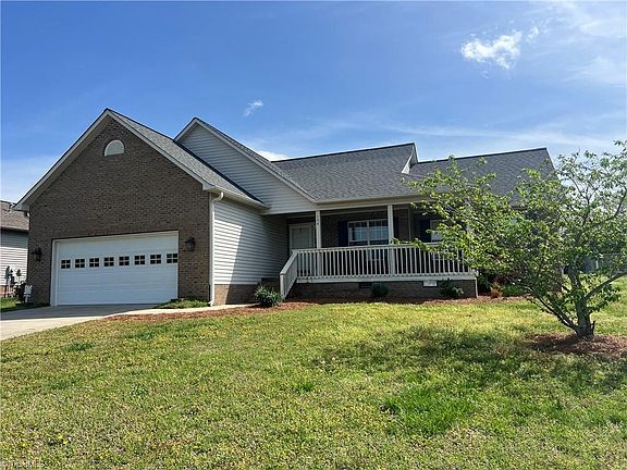 Imagine coming home to a place where comfort meets convenience, where every detail has been thoughtfully designed to create a warm & inviting space. Welcome to 106 Erica Dr, a beautifully maintained home that offers modern living with timeless charm. As you step onto the large rocking chair front porch, you can already picture yourself enjoying your morning coffee or unwinding after a long day. Inside, the vaulted ceilings in the living & dining rooms create an airy, open feel, while the gas fireplace in the living room adds warmth & coziness. The popular split-bedroom design provides privacy and functionality, offering three spacious bedrooms & two full baths. The primary suite is a true retreat, featuring a large walk-in closet, a double vanity, a separate shower, & jetted tub—the perfect place to relax. With brand new luxury vinyl plank flooring installed throughout the home, every step feels fresh & stylish. Plus, a 1-year home warranty is included, giving you added peace of mind.
