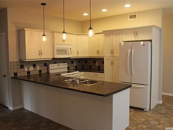 LOCATION! CONDITION! LOCATION! Welcome HOME to this Immaculate 4 Bedroom Condo only steps away from the Public Swimming Pool, Hockey Rink, Curling Rink and the Midale Health Centre. This Country Style Duplex has all the bells and whistles! Large kitchen with bright white cabinetry and good size breakfast bar. Formal dining. Large living room with gas fireplace and garden door to rear deck. Huge Master bedroom with 4 piece ensuite and 9'x6' walk in closet. Good size 2nd bedroom which could be used as a den. Main floor laundry. Finished basement includes an enormous recreation room, 2 large bedrooms, 4 piece bath and large storage room. Heated double attached garage. Central Air. New shingles Sept. 2025.