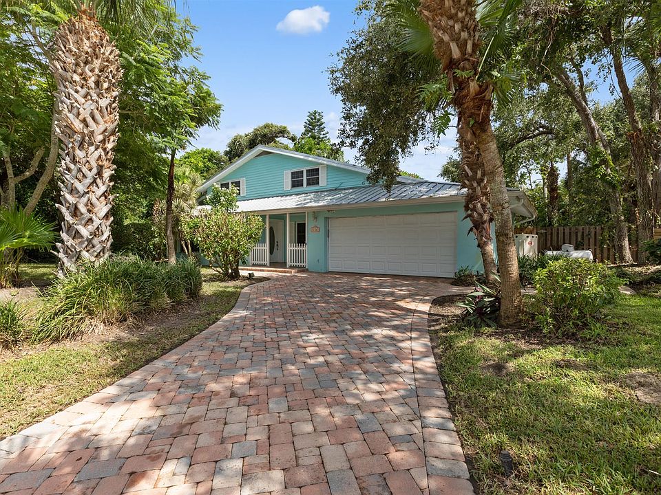 Nestled in luscious, green tropical foliage. This amazing Key West style home welcomes you to paradise! Newer metal roof, newer hurricane impact windows/garage door and a newer HWH! The cozy family room boasts a vaulted ceiling with sky lights and plenty of room to entertain. The formal living room has a wood burning fire place. Bamboo flooring throughout. Master bedroom on main floor. A second floor balcony that overlooks the tropical oasis. An eat-in kitchen with a movable island. Over-sized laundry room. Two sets of french doors to the Florida room that include removable windows for extra ocean breeze. Remodeled bath upstairs (handicap accessible walk in tub/shower with jets). Ocean, Indian River Lagoon State Park and South Beach Community Park nearby. A MUST SEE!
