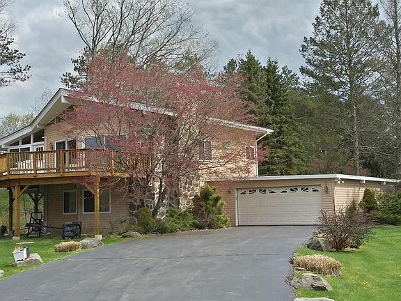 What great views of Hemlock Lake you will have from this four-bedroom viewhouse! This home is located just mere steps from Hemlock Hills Beach. Enjoy the view of the lake from the outdoor V-shaped deck, or through the grand sliding doors from the comfort of the living room with a decorative fireplace and brick face walls. A spacious kitchen with access to the dining area and four-seasons room with a side deck have their own amazing views to the great outdoors. Enjoy the additional outdoor retreat of a private, fenced-in area near the side deck. Beautiful tongue and groove ceilings and skylights are found throughout the home, which give each room a decorative focal point and ample natural lighting. Both upper and lower levels of the home have hardwood and tiled flooring.