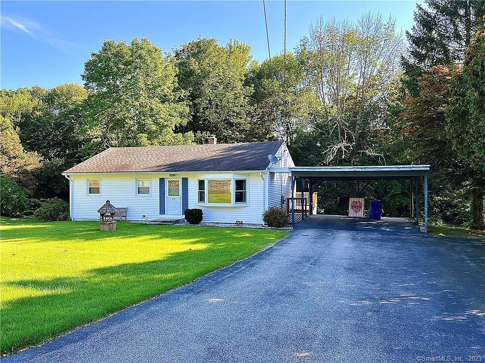 Spotless 3 bedroom ranch in move in condition. Newer kitchen with new Anderson windows. Beautiful hardwood floors throughout. Livingroom has new Bay window. Bathroom remodeled about 5 years ago featuring oversized walk in shower. New oil tank. The chimney is new from the roof up. Woodstove hookup in basement. One bedroom has an exterior door. New basement door. Large carport to keep your car out of the weather.