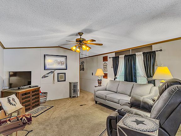 Welcome Home to Ferneland! This 2 bedroom, 1 bathroom mobile home is for sales, furnished and ready for you to move in. Minutes from Tablerock Lake, you can own have that lake getaway and enjoy being so centrally located. Wal-Mart, Walgreens, gas, groceries and restaurants are just a few miles away. Welcome home to a large eat-in kitchen and living room where you can relax. Take a break from stress and relax in the large master bedroom and walk-in spa shower. The mobile sits on the best lot in the park, with a beautiful exterior and no lawn work because it's included in the leased lot fee. Water and sewer are also included in the lot lease fee. Enjoy the view on the front porch and back porch. New HVAC less than a year ago! Appliances are almost new and lightly used the only thing missing is you! Schedule a showing today and welcome home! *this listing for mobile home only, land does not convey *property listed w/Carolyn Boss Keller Williams Tri-Lakes 667-201-8374