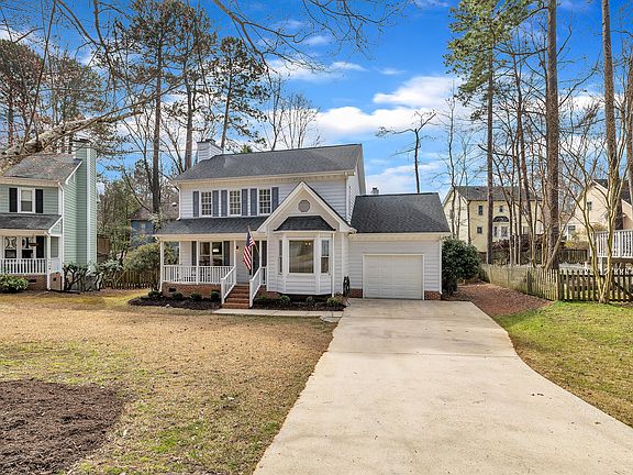 Stunning 3-bedroom home with a fully renovated kitchen & primary bath, convenient to downtown Cary, I-40, RTP, RDU & greenway trails. This beautifully updated two-story home on a cul-de-sac lot offers 3 spacious bedrooms, 2.5 baths, and a perfect blend of modern updates and classic charm. As you step inside, you'll be greeted by gorgeous hardwood floors that flow throughout the main living areas, creating a warm and inviting atmosphere. The formal dining room provides an elegant space ideal for hosting family dinners and holiday gatherings, & the cozy living room with a wood burning fireplace is the perfect spot for relaxing after a long day or enjoying time with loved ones. The heart of the home is the fully renovated kitchen (2021), a chef's dream featuring gorgeous quartz countertops, a farmhouse sink, and Diamond cabinetry with convenient drawer dividers and pull-out tray. Cooking is a breeze with the gas range, custom hood, and ample storage. The perfect space for preparing meals and entertaining guests! Upstairs, the primary suite is an oasis of relaxation. Renovated in 2022, the luxurious bathroom boasts a quartz vanity, tile floors, a spacious walk-in tile shower, sliding glass doors, and thoughtful touches like soft-close drawers and built-in shelving. It's a retreat you'll love coming home to. Outside, enjoy your own private haven in the beautifully landscaped fenced backyard, complete with lush fescue grass, arborvitae trees, and a garden box ready for your green thumb. The deck overlooks the serene yard, offering the perfect spot to unwind and entertain. This home combines modern elegance with everyday comfort and convenience. Don't miss out on this incredible opportunity—schedule your private showing today! 2019 Roof Shingles & 2019 HVAC system. See full list of upgrades & special features in MLS Docs. Preferred closing within 30-45 days & occupancy until June 3rd.