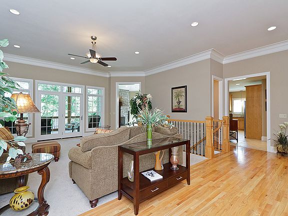Truly a one of a kind sprawling custom ranch on private, wooded cul de sac lot. This home has to many amenities to list. From the moment you walk in you will be greeted with 11 ft ceilings, wood flooring, 8 ft doors and tons of crown molding. The spacious great room has glass French doors leading to private screened in porch. The kitchen is a chefs delight with granite countertops, eat up bar, walk in pantry, s/s kitchen aid appliances with gas cooktop and ice maker. Hearth room has vaulted ceiling, Stone fireplace with gas logs and tons of windows. Large Master bedroom suite has double vanities, tub, walk in shower and large walk in closet. Additional bedroom, full bath, powder room and office complete the first floor. The finished walk out lower level has rec room, family room, exercise/sitting room, bedroom and full bath. Additional features include inground sprinkler system, security system, 3 car garage and located across the street from Lake Forest Country Club.
