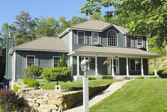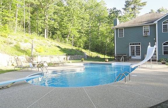 Elegant Home Elite Neighborhood Convenient Location - Welcoming Farmer's Porch, Dcor windows to maximize sunshine. Private setting wooded backdrop Lush Landscaping w/Granite posts & Granite steps, Rock walls, outdoor Fplc, In-Ground Htd Salt water pool, 2+ gar under & detached Gar & Carport & pool house w/half ba. 3 Brms, 5 Baths 9` Ceilings - Huge Fam Rm w/Tre Ceil & Fplc, Gourmet Kit w/ Granite Island, Breakfast Nook, Hardwood & Tile floors, Formal Dining, Study, custom leaded-glass French Doors, Liv Rm w-Fplc, 2-Story Foyer w/Palladian Window - Master suite w/Tre Ceiling-Jacuzzi-Granite Dbl vanity-Tile Flr-lovely custom window - WIC. 2nd flr AND Bsmt Lndry Rms, Fin Bsmt w/Relax area & Rec Rm w/Wood Stove. Lg Composite Deck, Stone Patio, Fenced Yd, Gas Ht, Ceil Fans, Recessed Lites, Blt-in Speakers! Top Quality Amenities everywhere you look. A Home you will love to call your own !! Conveniently only 1 mile from Exit 2 on Route 101 -- 10 minutes to Manchester & the Mall