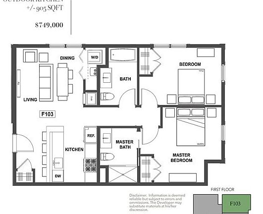 - Total interior livable area: 905 sqft