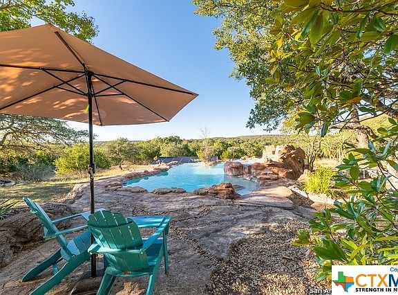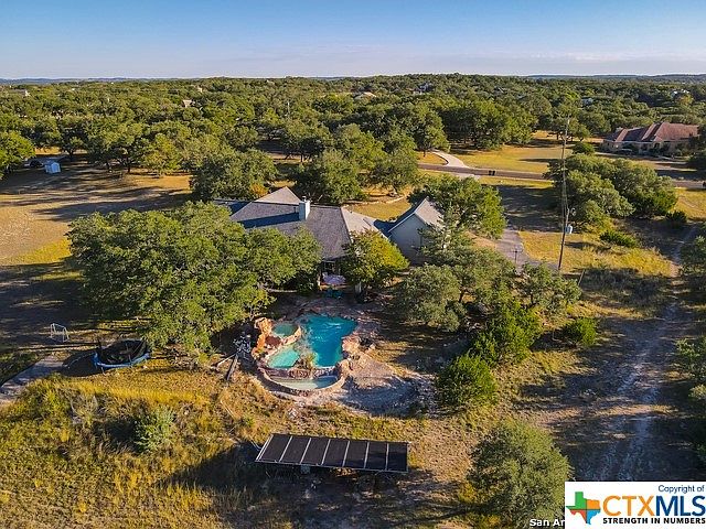 PARADISE FOR NOT A LOT OF MONEY. RARE 5 BEDROOM 1 STORY HOME ON 4.6 ACRES WITH A HEATED POOL. CUSTOM-BUILT HOME IS READY, ENJOY COUNTRY LIVING! GOURMET KITCHEN WITH ISLAND, UPGRADED APPLIANCES AND WALK-IN PANTRY. BIG FORMAL DINING AREA WITH BREAKFAST AREA. DOUBLE SIDED FIREPLACE GAS STARTER. 3 TOTAL LIVING AREAS LIVING ROOM, BIG FAMILY AND GAME ROOM.MASTER RETREAT WITH OUTSIDE ACCESS. MASTER BATH FEATURES LARGE WALK-IN SHOWER, JACUZZI GARDEN TUB, DOUBLE VANITIES AND BIG WALK-IN CLOSET. PRIVATE BACKYARD WITH COUNTRY VIEW AND A FIREPIT FOR RELAXING. 4.6 ACRES TO ENJOY THE BACK ACREAGE ON YOU VERY OWN TRAIL AND WALK THRU YOUR HUGE COUNTRY BACK YARD. LARGE CUSTOM STORAGE SHED ON SITE. WATER HEATERS, SEPTIC PANEL, WELL PUMP REFURBISHED, INSIDE PAINTED, WATER SOFTENER AND FILTER SINCE 2021. WITHIN MINUTES OF SAN ANTONIO, BOERNE, NEW BRAUNFELS SHORT DRIVE TO AUSTIN. THIS IS A VERY NICE HOME AS IS BUT PRICE HAS BEEN LOWERED 100K TO ALLOW YOU TO ENJOY THE SAVINGS ON A TRULY NICE PARADISE HOME.