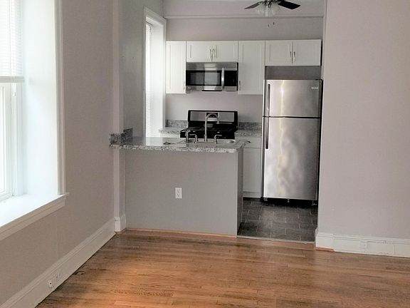 Spacious 1st floor two bedroom apartment in center of town. Additional storage space is availabel for rent. Great Room opens to a new kitchen with stainlesss steel appliances and breakfast bar. Great room has slider that leads to a nice porch. Refinished hardwood floors. The apartment has central air and heat. Washer and dryer in the unit. The bathroom has been updated. Water is included in the rent. Tenants pay for heat and electric. The apartment is in the center of town next to shopping, restaurants and the train. Close to Ardmore, Haverford, Wynnewood, Bala Cynwyd, Merion and Bryn Mawr.