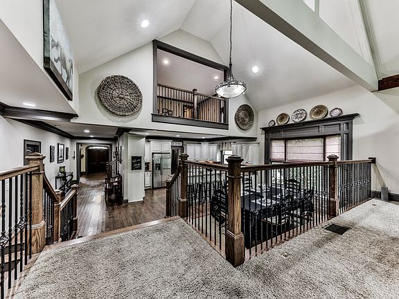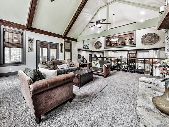 INSTANT EQUITY ; BELOW APPRAISED VALUE! Custom home featuring high-level finishes / trim throughout. Luxury master suite on main floor w/ walk in closet & spa bath w/private access to 4-season sun room (sun room w/gas line for 3rd fireplace). Gourmet kitchen w/granite, SS appliances, bar counter, breakfast area, butlers pantry, window seat and open concept to vaulted, beamed fireside great room. Upper floor features a large loft area overlooking the grand great room. Generous sized secondary bedrooms each with individual baths. 4 car garage with a second driveway to the second 2 car garage w/2 car carport. Terrace pre-wired for future in-law suite, media room, full bath, bonus room, separate laundry and full kitchen ready to finish to your liking.