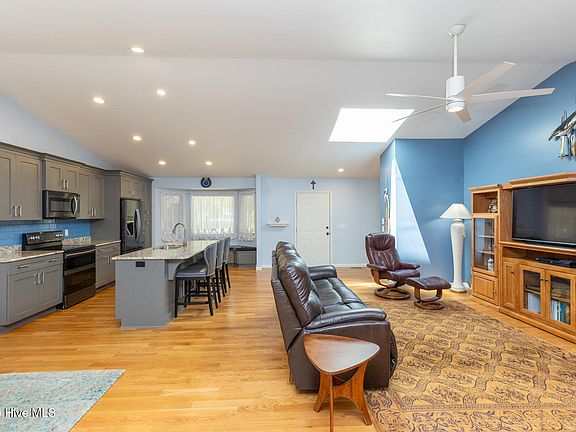 This beautifully updated 3-bedroom, 2-bath waterfront home in the popular Seven Lakes North community is perfectly positioned on a picturesque 0.36-acre lot, offering a blend of modern comfort and natural serenity. Step inside to discover a truly open-concept layout, highlighted by vaulted ceilings spanning the living room, kitchen and dining area, with hardwood floors throughout the main living areas and bedrooms. The spacious living room features a charming brick gas-log fireplace creating a cozy yet airy atmosphere. The completely remodeled kitchen boasts granite countertops, stylish tile backsplash, and a large center island, ideal for entertaining or casual dining. Adjacent to the kitchen, the dining area is by double glass doors to a screened porch, perfect for relaxing with a view. Step onto a great back deck overlooking a peaceful, shady garden-like backyard with breathtaking views of Lake Ramapo. The primary bedroom suite has sliding glass doors that open directly to the deck, perfect for waking up every morning to shimmering water views! This home must be seen in person to truly appreciate its warmth, charm, and thoughtful updates. As a resident of Seven Lakes North, you'll enjoy access to an array of exceptional community amenities, including multiple lakes with parks, picnic areas, and swimming beaches, clubhouse with community pool, basketball and tennis courts, and an equestrian center. Don't miss your chance to own this move-in ready waterfront gem!