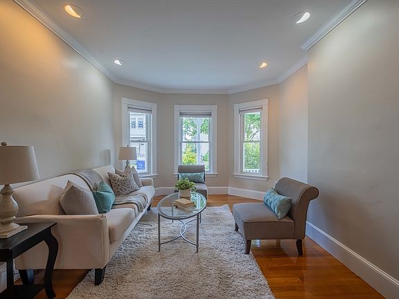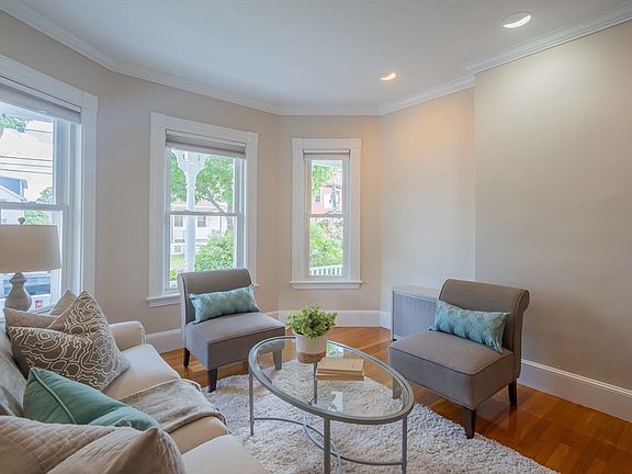 This well-maintained and updated townhouse offers the comfort of single-family living with the carefree conveniences of condo ownership, only steps to shopping and dining in Arlington’s vibrant town center. The farmer’s porch welcomes you into the home’s freshly painted interior where you will discover a floor plan designed for comfortable living and entertaining. The open concept living and dining rooms have hardwood flooring, crown molding, recessed lighting, and a large bay of windows. Modern style defines the kitchen with sleek granite counters, SS appliances including a gas range, shaker style cabinetry, and a breakfast area with a large picture window. The newly established exclusive use backyard and front garden are sure to delight! Enjoy your private, third level primary suite with a walk-in closet and bathroom with a dual sink vanity. Walk to area playgrounds, bus stops, the Minuteman Bike Path, Capitol Theater, shopping, dining or Spy Pond to enjoy sunset views.