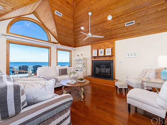 STUNNING SOUNDFRONT HOME! RENOVATED & BEAUTIFULLY DECORATED! ELEVATOR! BREATHTAKING SOUND VIEWS AND SUNSETS! This is the home you have been waiting for...meticulously maintained, turnkey, and shows like new! Featuring a newly installed fortified roof, new exterior paint, new separate HVAC system for the primary bedroom, newly converted gas fireplace in the living area, remodeled baths in the whole home, most windows and doors are new, gourmet kitchen, and more. Welcome to 106 Gannet Lane, a beautifully appointed modern coastal home perfectly situated on the Currituck Sound in the highly desirable Sanderling neighborhood of Duck. This 2,462-square-foot, four-bedroom, three-and-a-half-bathroom home captivates from the moment you step into the beautiful and inviting foyer, featuring a two-story vaulted wood ceiling and an eye-catching chandelier, setting the tone for this remarkable retreat. Recently renovated, the home includes four spacious bedrooms. The primary bedroom is a true oasis, with a large picture window that frames the sound, separate new HVAC system and a remodeled luxurious ensuite bathroom complete with walk-in tile shower, gorgeous double vanity, and ample storage. Two bedrooms overlook the serene sound, offering stunning water views through large picture windows and individual access to the deck where a relaxing hammock and double swing await. One of these bedrooms enjoys a full ensuite bathroom while the other shares a full bathroom with the fourth bedroom. The newly constructed spacious and functional laundry room on the mid-level offers additional storage and utility sink. Upstairs, the open and airy living room—with its newly converted gas fireplace, vaulted ceilings and large picture windows—invites natural light and provides a peaceful setting and unobstructed view of the magical Outer Banks sunsets over the Currituck Sound. The modern kitchen, equipped with high-end appliances, has a generous island that flows seamlessly into the dining room, which is surrounded by large picture windows and sliding doors offering 180-degree panoramic views of Currituck Sound. Step outside onto either top-floor deck for a quiet moment or entertaining, as chairs offer prime seating for enjoying the natural beauty of the water and wildlife. The ground floor boasts extensive storage space for all your beach and outdoor gear, as well as easy access to the updated private outdoor shower and private pier that leads to the scenic beauty of the sound and access for water sports. The grounds are immaculately landscaped with natural vegetation and a large stone pebble driveway. Children will delight in two playground swings hanging from the deck above. Residents and guests of 106 Gannet Lane will also enjoy the coveted amenities of the Sanderling neighborhood, including a community pool, tennis courts, and proximity to the renowned Sanderling Resort, Kimball’s Kitchen, and Paper Canoe restaurant. Beach access is just a short walk to the east, and Duck’s charming shops, restaurants, and activities are a quick five-minute drive south. Don’t miss this exceptional waterfront retreat!