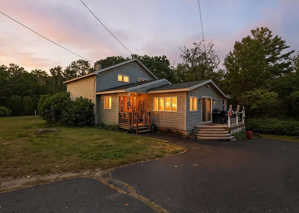 Welcome to 106 Gardner Rd in Hubbardston. This 3-bedroom, 1.5-bath Colonial offers over 1,700 sq. ft. of living space on nearly 2 acres of land. The main level features an open kitchen with cathedral ceiling, skylights, island, and pantry, flowing into a dining room with bay window and stone tile flooring. A spacious living room with pellet stove and slider opens to the deck and backyard. Upstairs, the primary bedroom includes a walk-in closet and ceiling fan, along with two additional bedrooms and a full bath with solid-surface vanity. Exterior highlights include a front porch, wood deck, storage shed, and garden area.