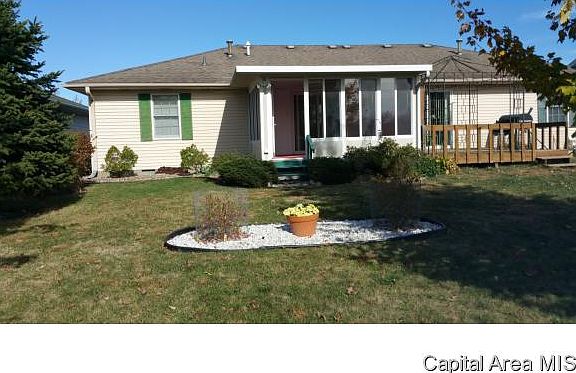 Watch the sunset or rise over the pond while sitting in your large sunroom. This freshly painted 2 bed 2 car garage is ready to move in. Springfield address with Chatham Schools. The furnace an A/C is 3-4 years old.