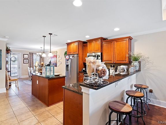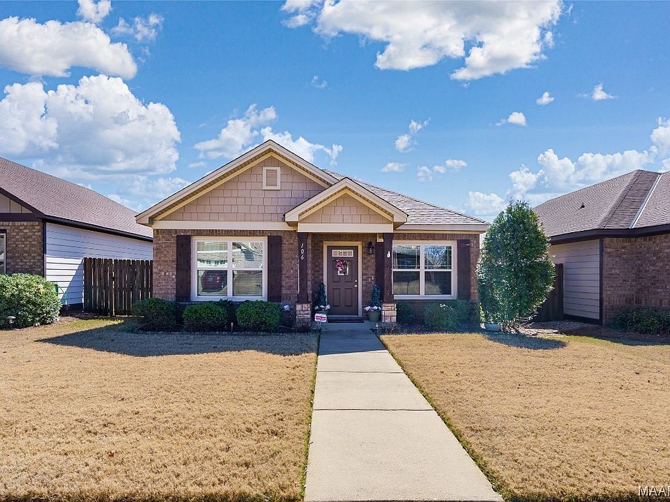 Charming describes this lovely Glennbrooke home! As an added bonus, the owner has a VA assumable loan! Custom details add elegance and functionality to this 3 bedroom/2 bath home. The open floor plan is perfect for entertaining. The den boasts a gas fireplace surrounded by custom built-ins. The flow of the home is not only practical, but elegant with crown molding upgrades. The kitchen features granite countertops, a huge pantry, new farmhouse sink, electric range, and work station island. The dining area is open to the kitchen and provides access to the rear patio and carport. The primary bedroom features a tray ceiling and large walk-in closet. The ensuite bathroom gives a spa-like vibe with a garden tub and separate shower. The remaining two bedrooms have large closets and share a hall bath. One bedroom boasts a custom Murphy bed, which makes the room multi-functional as a bedroom, office, or bonus room. The fenced yard is perfect for pet lovers and gardeners alike! New owners will enjoy the Glennbrooke subdivision amenities, including pool, park, and neighborhood activities. This east Prattville home is convenient to shopping, schools, and I-65. This beautiful property won't last long, call your favorite realtor to tour today!