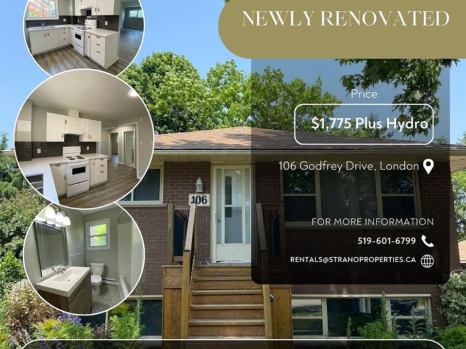 AboutBright & Spacious Newly Updated 2-Bedroom Apartment Lower Unit at 106 Godfrey Drive!Welcome to this inviting 2-bedroom, 1-bathroom lower-level apartment, perfect for those seeking a comfortable and affordable home in a pet-friendly setting. Designed with practicality in mind, this unit offers a bright and open layout with full-sized windows, allowing for plenty of natural light despite being a lower-level space. Perfect for families or students. Close to Fanshawe and Western! - The living area provides a cozy yet spacious atmosphere, ideal for relaxing or entertaining guests. - Residents will enjoy the convenience of laundry facilities in the building, making everyday chores simple and hassle-free.- Step outside to the shared yard, a great space for outdoor activities, gardening, or simply unwinding in the fresh air. - With two dedicated parking spots, you'll never have to worry about finding a place to park.- This unit is pet-friendly, making it a great option for those with furry companions.Available now for $1,775 per month, plus hydro (Water and heating included!)Don't miss your chance to call this charming apartment home! Contact us today to schedule a viewing.Community Amenities- Shared yard- Public transit- Shopping nearby- Parks nearby- Schools nearby- No Smoking allowedSuite Amenities