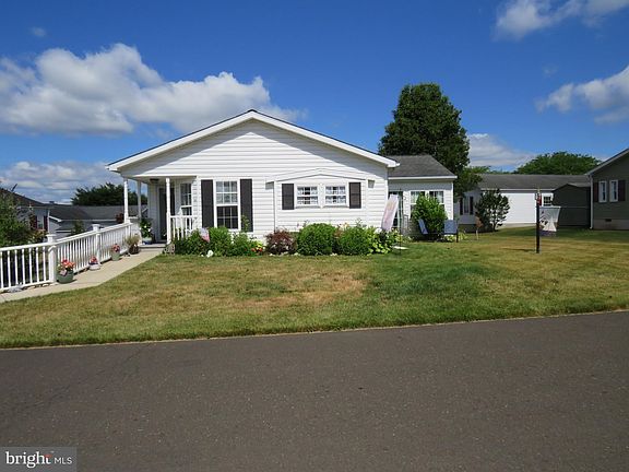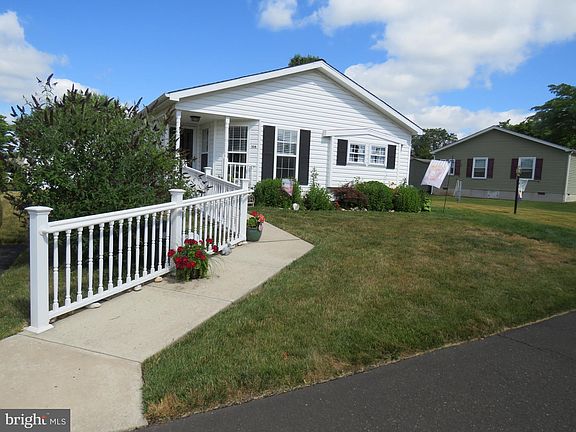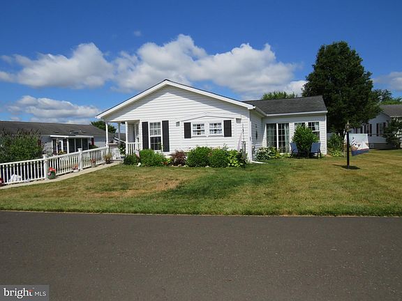 This home is ready for you to move in and enjoy. The ramped sidewalk to the Trex deck porch entry is a plus with no steps. As you enter you will notice the open living room and dining room with lofted ceilings and gorgeous flooring, this space is great for entertaining. The large kitchen with granite counters and plenty of wood cabinets and a bright and sunny breakfast area makes this home a delight . All upgraded window treatments are included. The laundry room opens to a lovely sunroom almost the length of the house with storage above. Storage shed is behind the house. The second bedroom has a walk in closet and the updated hall bath with a beautiful two person shower stall is just across the hall. The primary bedroom sits at the end of the hall and has a walk in closet and private bathroom with double vanity. This home sits on a larger lot in the community. Don't hesitate this one will not be on the market long.