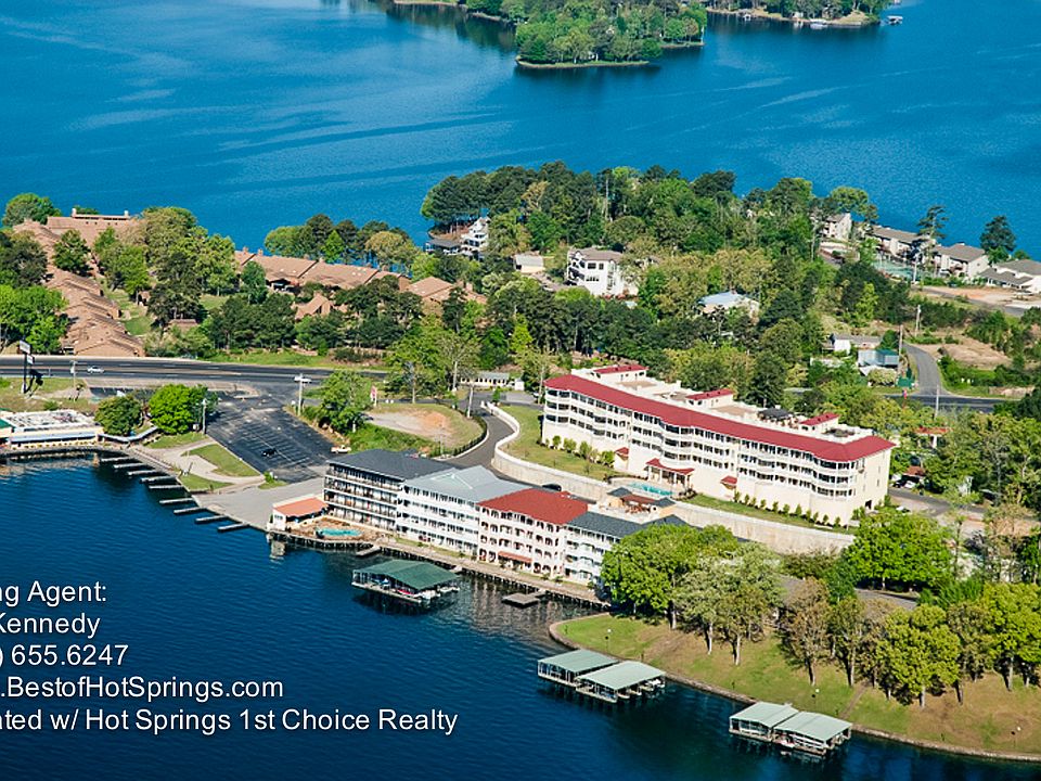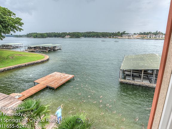 This picture-perfect walk-in level condominium on Lake Hamilton is filled with a heart-stopping display of inviting architecture. As you begin the tour, you'll be overwhelmed with the wide-open floor plan that's filled with jaw-dropping amenities. This beautiful condominium is located at Fiesta Bay, & offers secure, covered parking in its gate-guarded complex, plus there's extra parking pads for your guests. The complex features a fantastic pool, cabana & outdoor kitchen, boardwalk along the water's edge