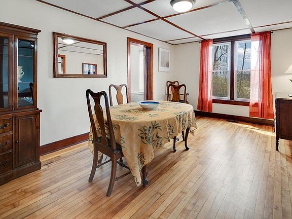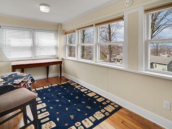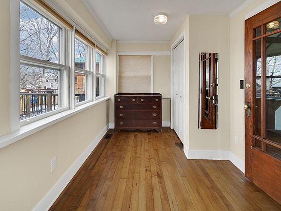 This South Hill gem lives large with spacious rooms and maple floors in the living, dining, & enclosed porch/office. The kitchen includes a breakfast nook & laundry area, plus a big workshop/storage room. Upstairs is a 2nd full bath and 3 large bedrooms. You'll love the covered porch and new Trex deck with wonderful distant lake views, overlooking your own yard and gardens. Sweet city location, tucked behind a private road. Very well maintained, updated windows, fully insulated, good basement too.Open house Saturday 4/29 from 10-12
