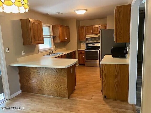 A beautiful 3 bedroom 2 bath 2 Car garage home . This beautiful home sits on a private lot with mature trees in the Greystone Subdivision. All newer flooring through out ,newer paint through out.A large back yard with full chain link fenced, a nice private deck to spend your evenings.This super cute home is a great home with a great price,Close to area Bases and NC Beautiful beaches.Metal roof was put on in 2019 .hvac 2019
