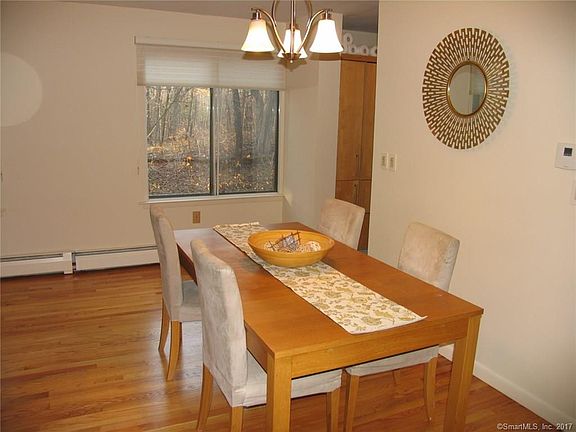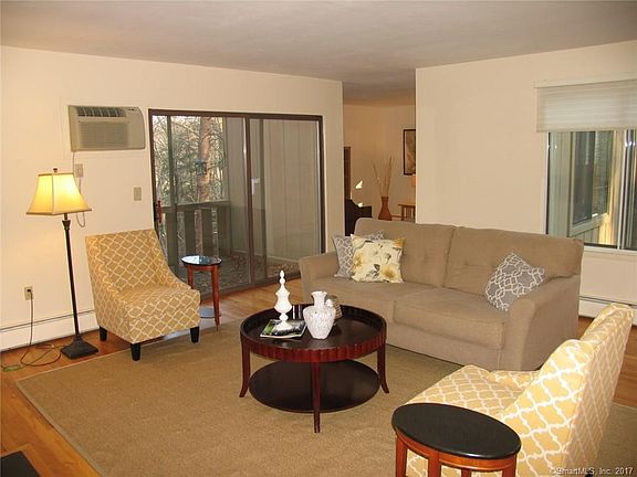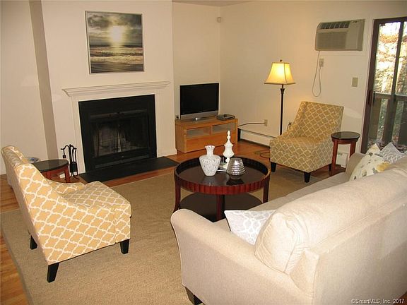 Bright and Sunny. Exceptional tri level townhouse has designer kitchen and baths. Large Living room/Dining room with fireplace and slider to private deck. Main level family room, just off the living room PLUS a lower level playroom (walkout) with work shop and cedar closet. The second floor has two bedrooms and two private baths. The spacious master bedroom has a fireplace. Full laundry is, conveniently, on the second floor. Two oversized detached garage bays are a short walk from the unit and the swimming pools is very close. Low heat costs and taxes. Any repairs or replacement of the boiler/heating system are included in the HOA fees. This is a true Guilford "Best Buy!"