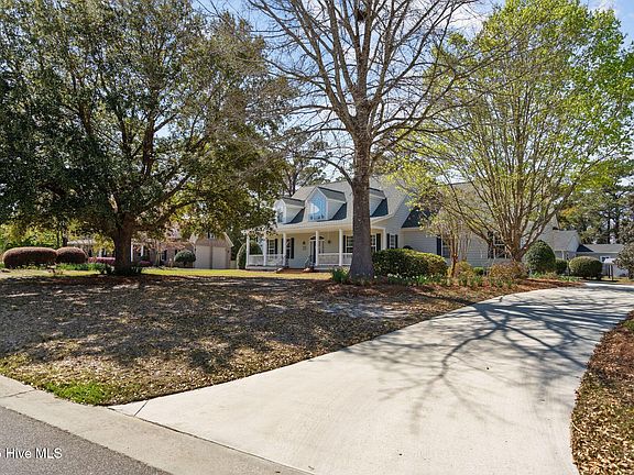 Welcome to this charming home nestled on a peaceful cul-de-sac in Scotts Hill. With beautifully landscaped grounds and an expansive front porch, this residence exudes warmth and comfort from the moment you arrive. As you step inside, an inviting foyer opens to a spacious dining room, perfect for entertaining. On the opposite side, a versatile formal living room or home office with French doors and a full bath offers convenience and privacy. The formal dining room flows into the kitchen, where you'll find an expansive island, ample cabinet space, granite countertops, and a cozy breakfast nook framed by bay windows. The airy living room, open to the second floor, boasts a fireplace with built-ins, plenty of natural light, and easy access to the screened-in back porch — ideal for relaxation or entertaining. The primary bedroom, located on the first floor, features bay windows, a large walk-in closet, and an ensuite bathroom with dual sink vanities and a walk-in shower. Upstairs, two generously sized bedrooms each offer two walk-in closets and share a full bathroom. Convenient back stairs from the laundry room lead to a large family room with an attached bathroom, complete with a walk-in shower, offering endless possibilities for use. With thoughtful design and ample living and storage space, this home is perfect for comfortable living in a tranquil setting.